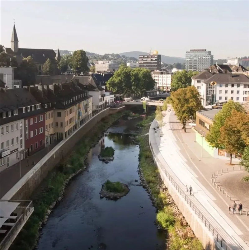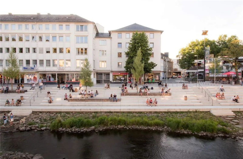 在拆除“ Siegplatte”(位于Sieg河堤防上的停車場(chǎng))之后,2012年至2016年期間沿著河段的大規(guī)模臺(tái)階建設(shè)使得新的直接通往河段的河流成為可能。錫根市中心。希格(Sieg)自然化,擁有草皮的島嶼和岸堤,可以使水生動(dòng)物和兩棲動(dòng)物通過(guò)生物通道。180米長(zhǎng)的樓梯雕塑在河邊,成為城市與河流互動(dòng)的表演舞臺(tái)。鑒于西格(Sieg)的自然風(fēng)光,西格特雷彭(Siegtreppen)變成了聚會(huì)場(chǎng)所。流域變成了上下城鎮(zhèn)之間的墊腳石。該項(xiàng)目獲得了無(wú)數(shù)獎(jiǎng)項(xiàng),并獲得了2017年德國(guó)景觀建筑獎(jiǎng)的“綠色基礎(chǔ)設(shè)施作為戰(zhàn)略”類別。