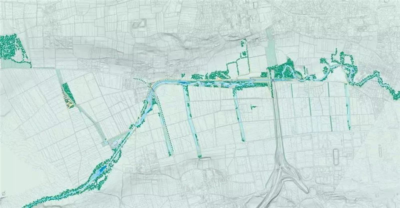 在整個(gè)流域、原有的山丘形態(tài)和人為改造的痕跡中,這條狹長(zhǎng)的河畔花園將這些場(chǎng)面、視野、沖突等構(gòu)成一場(chǎng)真實(shí)版愛(ài)森斯坦式“蒙太奇”。舊運(yùn)河留存的痕跡使得新的設(shè)計(jì)情景之中飽含復(fù)雜的時(shí)間性,有著十分遙遠(yuǎn)又非常現(xiàn)代的奇異感??臻g與時(shí)間的沖突之間充滿著記憶與希望。